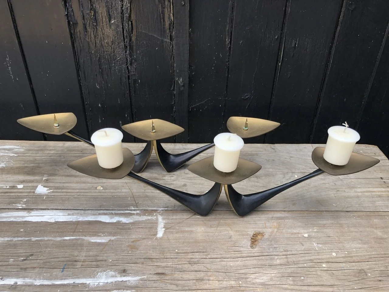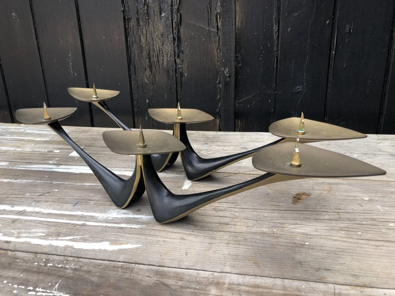 A stylish pair of brass candlestick by Klaus Ullrich for Faber & Schumache. w