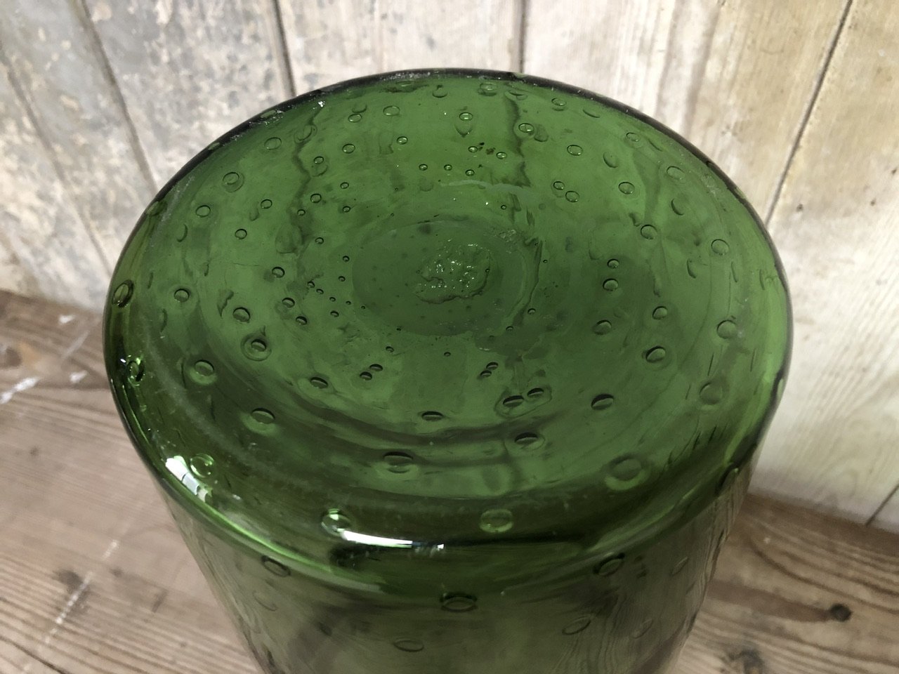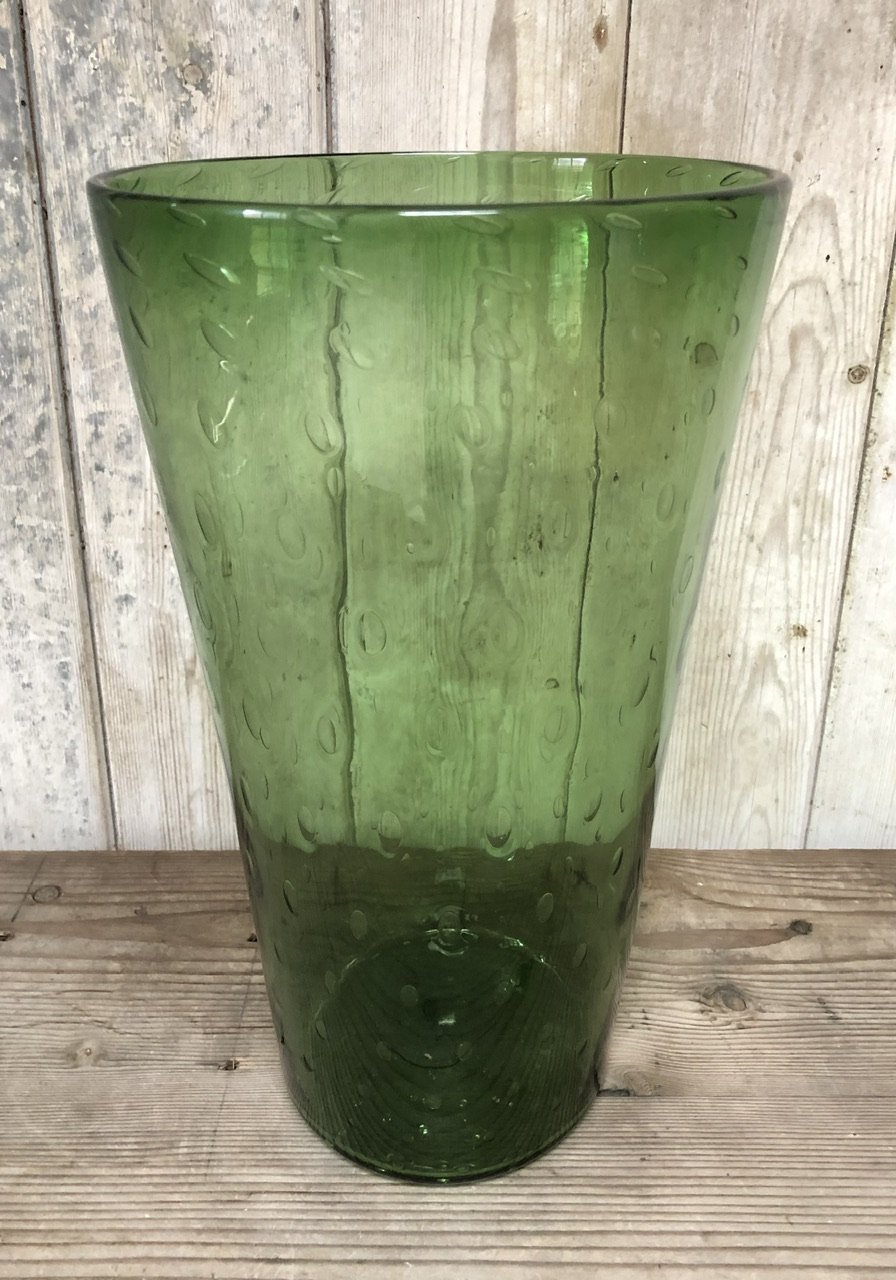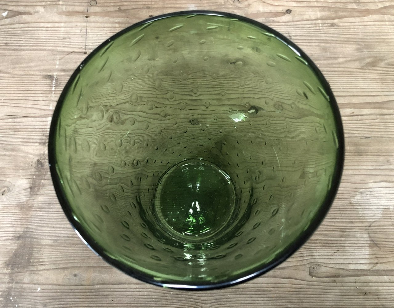 An impressively large green coloured Whitefriars bubble vase with hand blown pontil mark to base. This is an an unusual design & size of this type of vase
