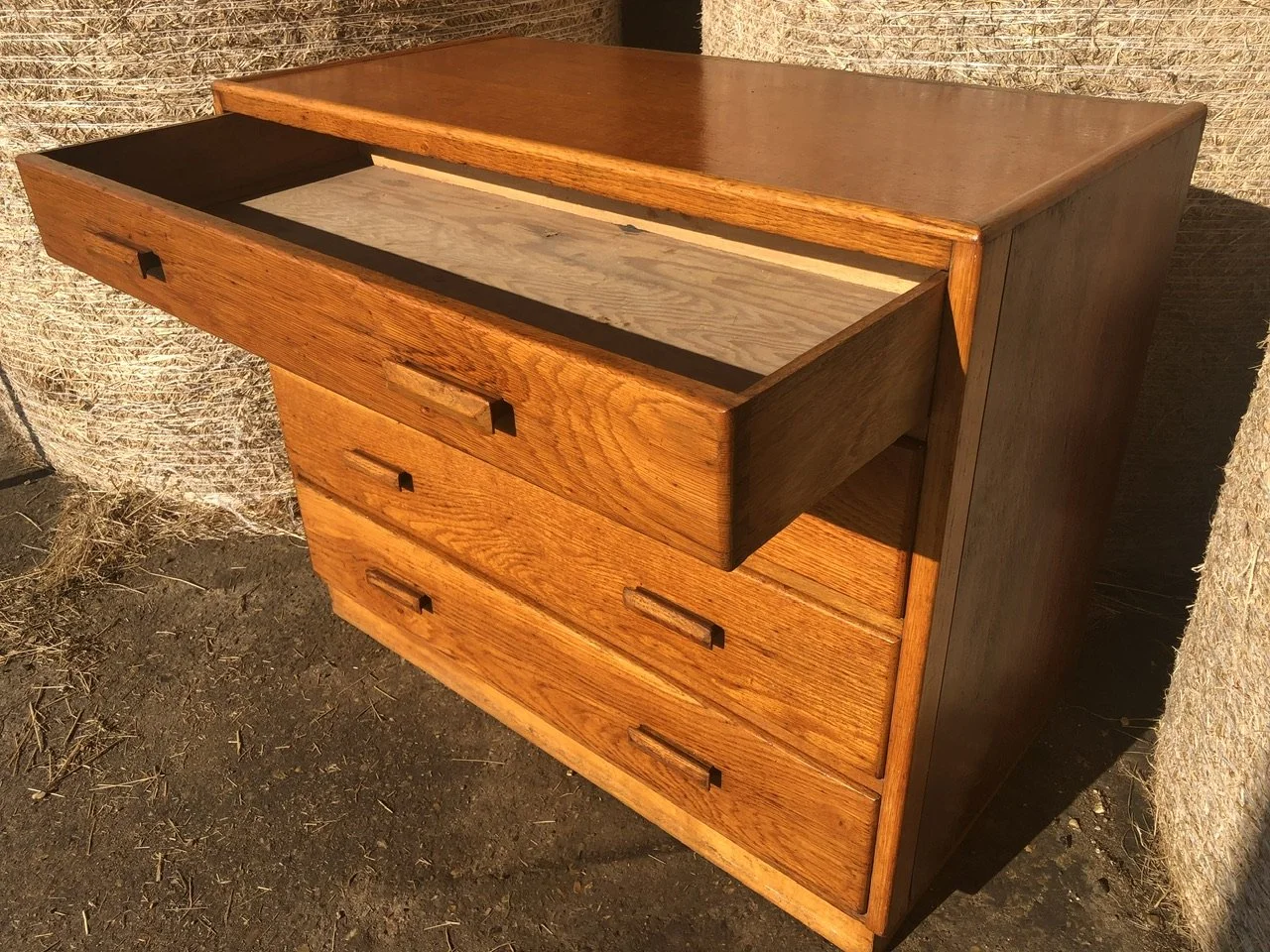 An oak chest of drawers with Art Deco styling & maker’s mark by Rowley of Kensington
