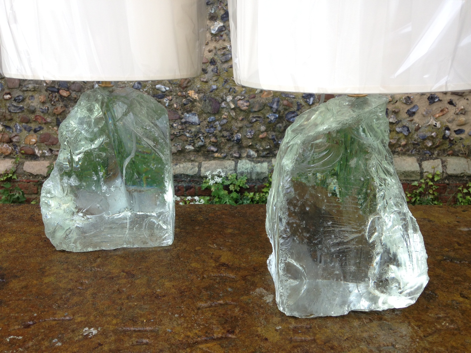 A pair of large & spectacular clear glass rock lamp with a cream card shades. Fully rewired.
