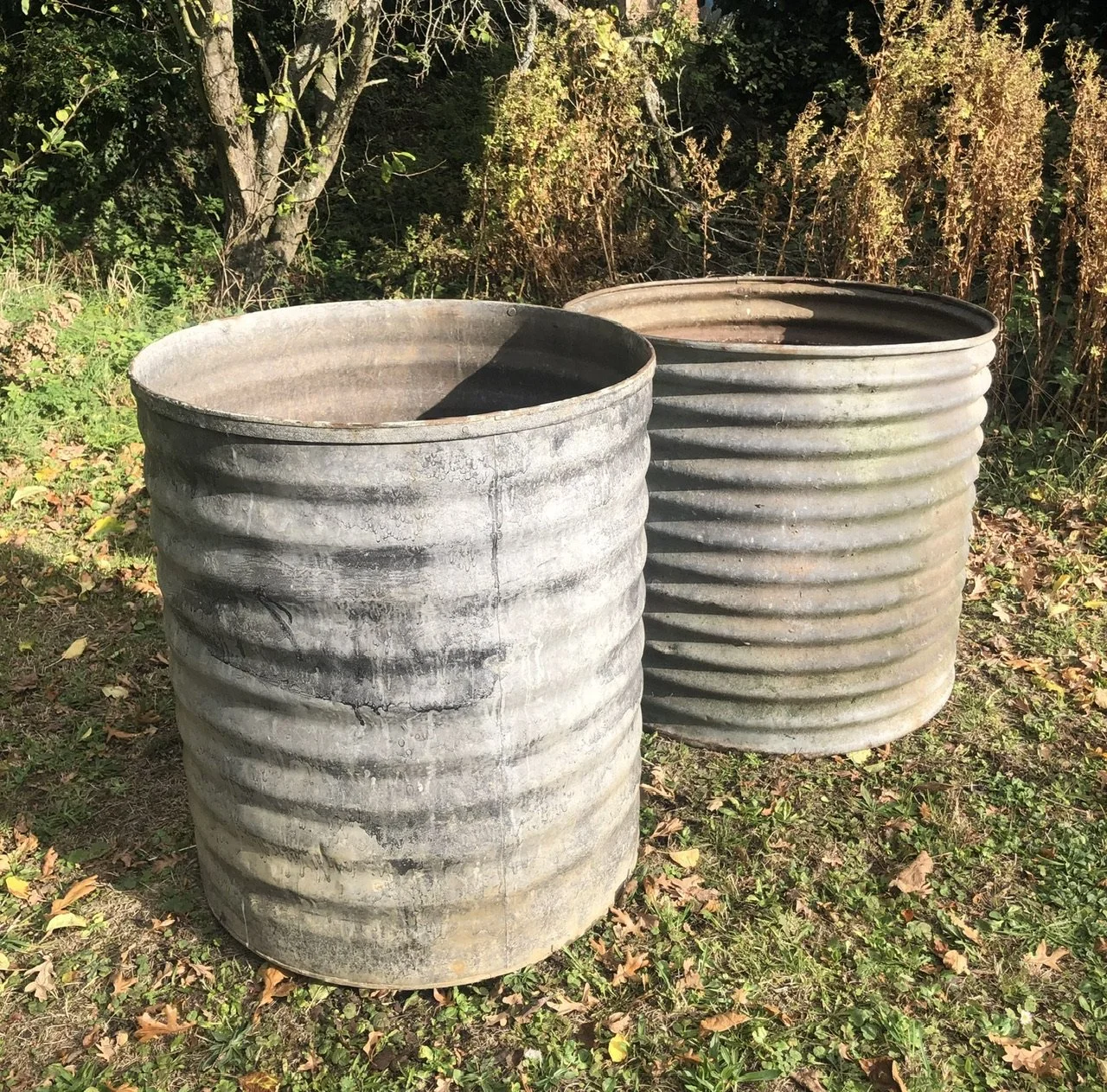 Galvanised ribbed containers, ideal as planters. Drainage holes in both the bases.