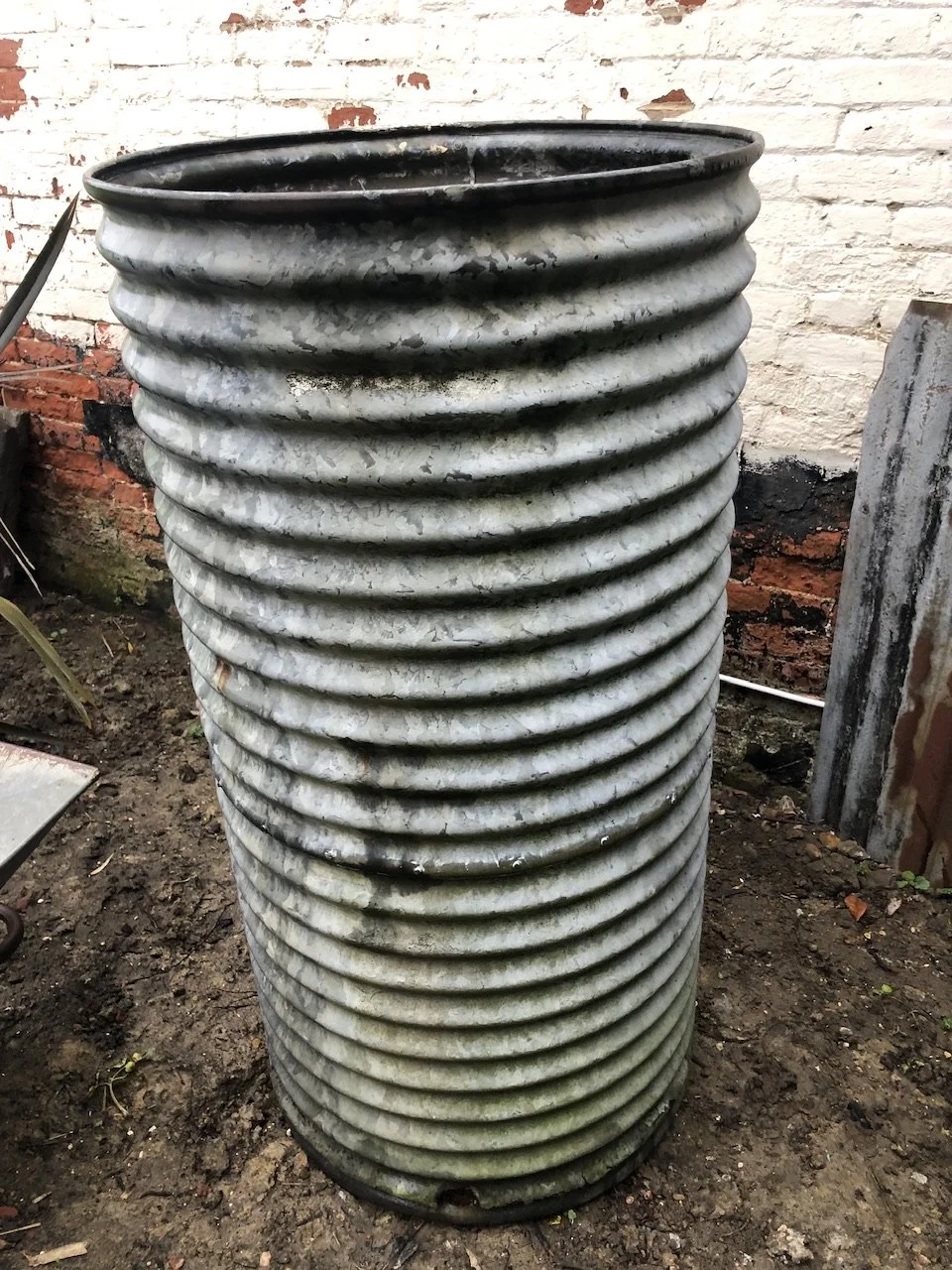Galvanised ribbed container, ideal as a planter with holes in base for drainage.
