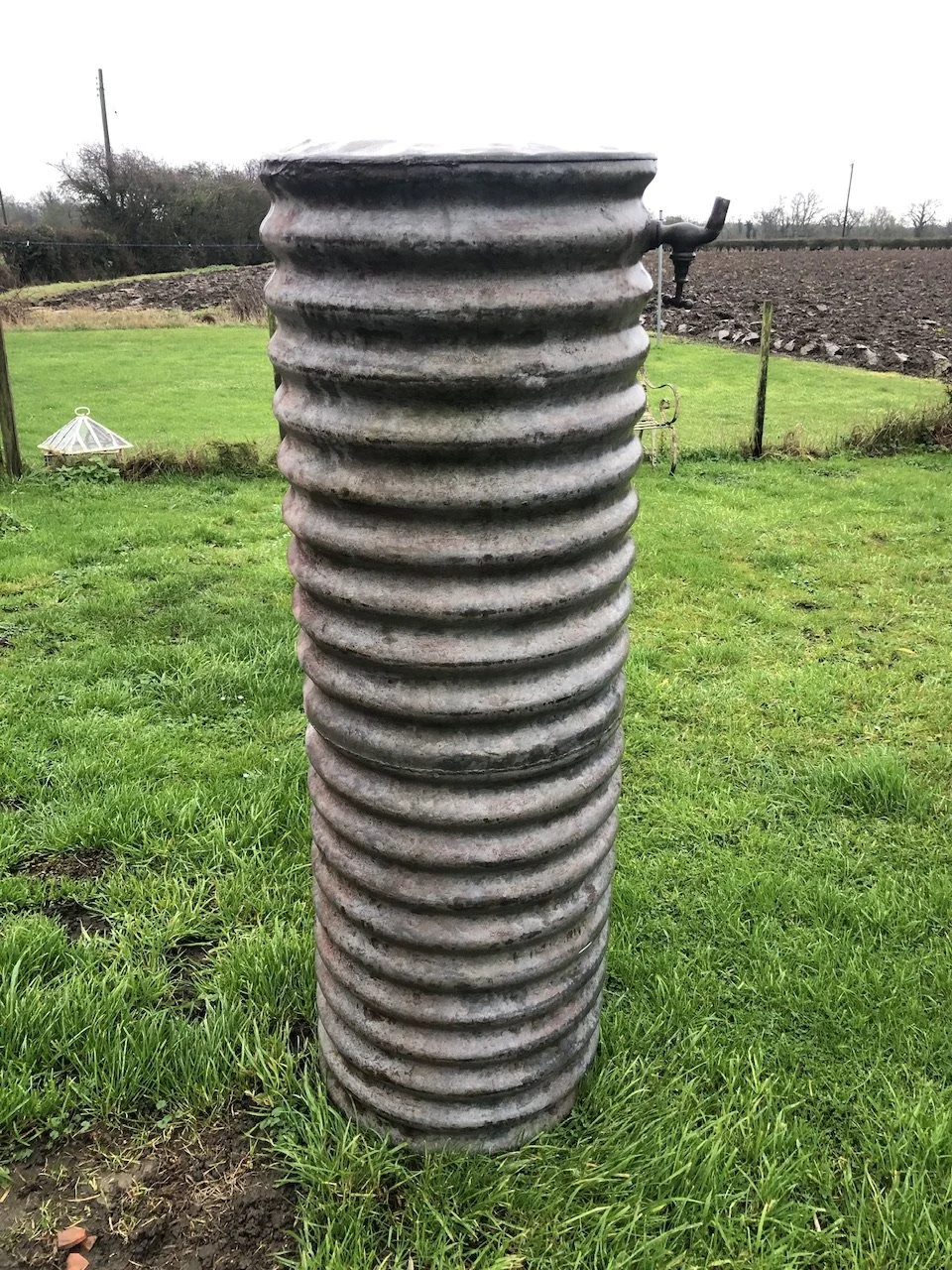 Galvanised ribbed container, ideal as a water butt as it has a tap (shown up side down).