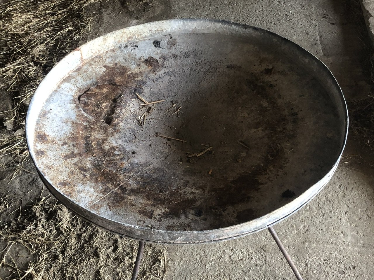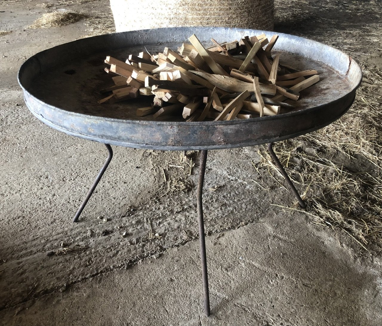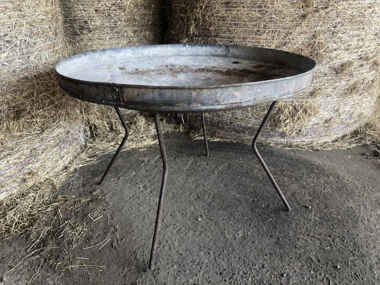 A good sized modernist fire pit on a detachable four legged base.