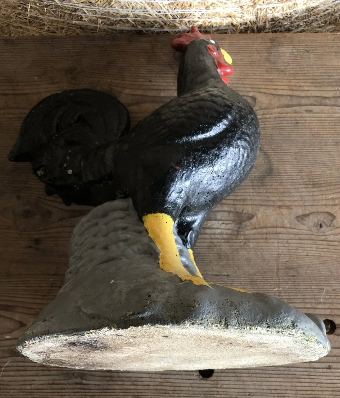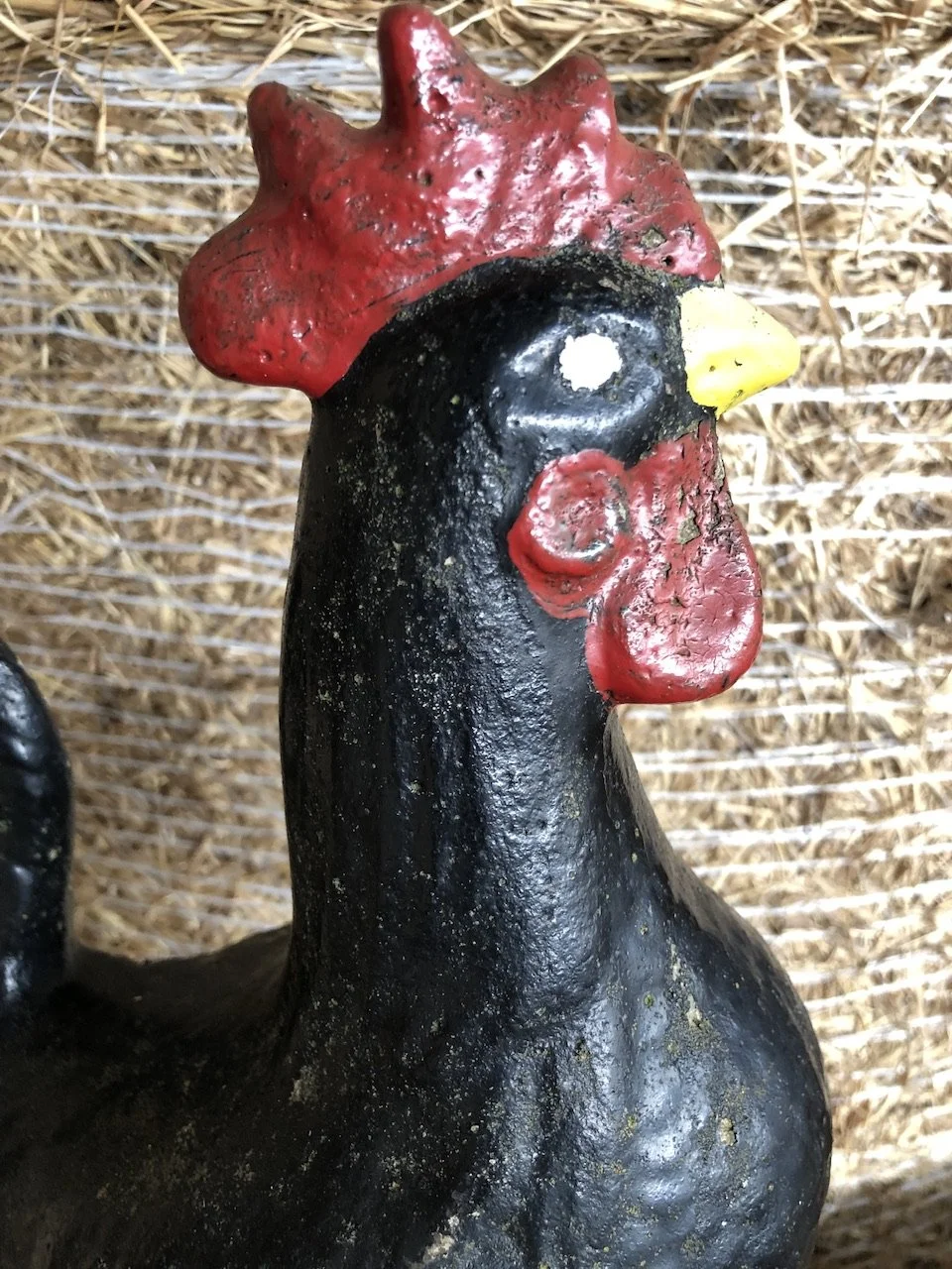 A garden ornament of a Black Cockerel. Probably a breed called a Minorcan.