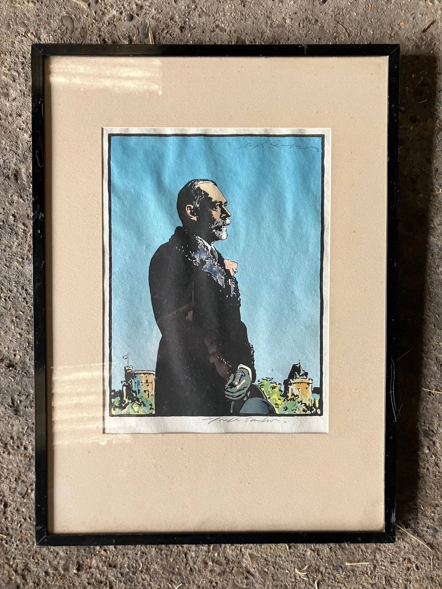 A Framed George V Mixed Media Print Signed by Joseph Simpson.