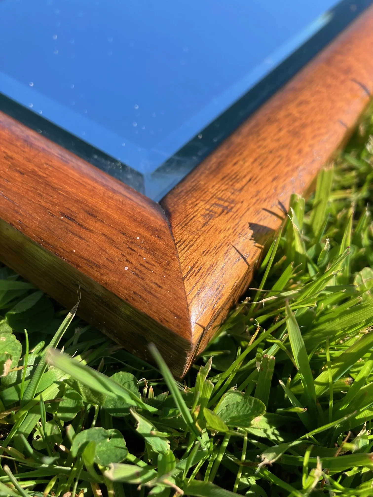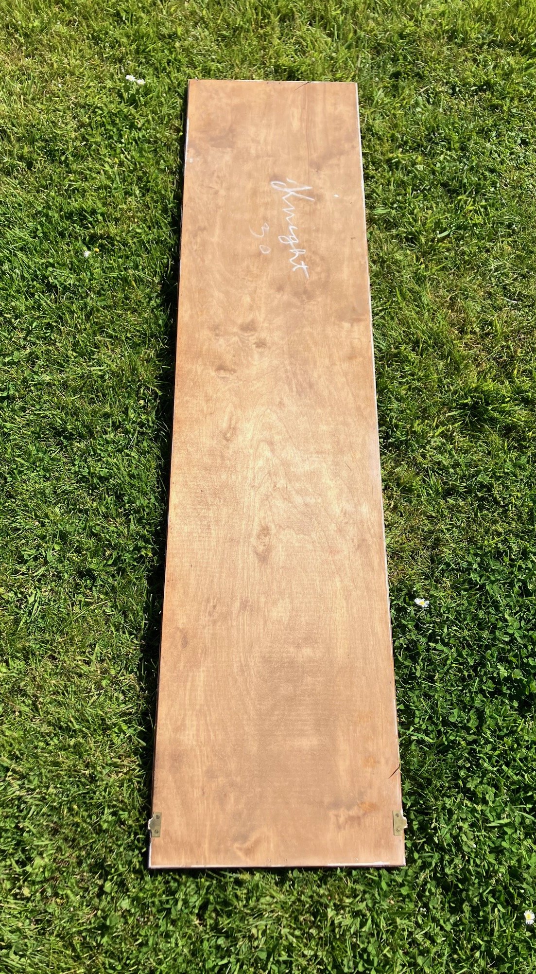 A tailor’s mirror with an oak frame. This mirror has the original timber back and original mirror plate.